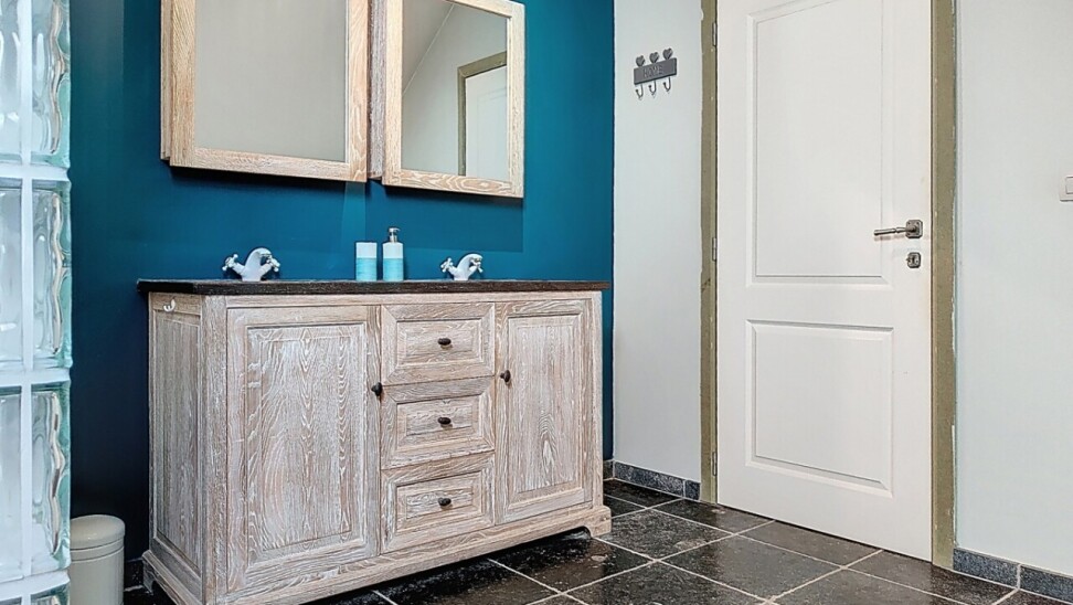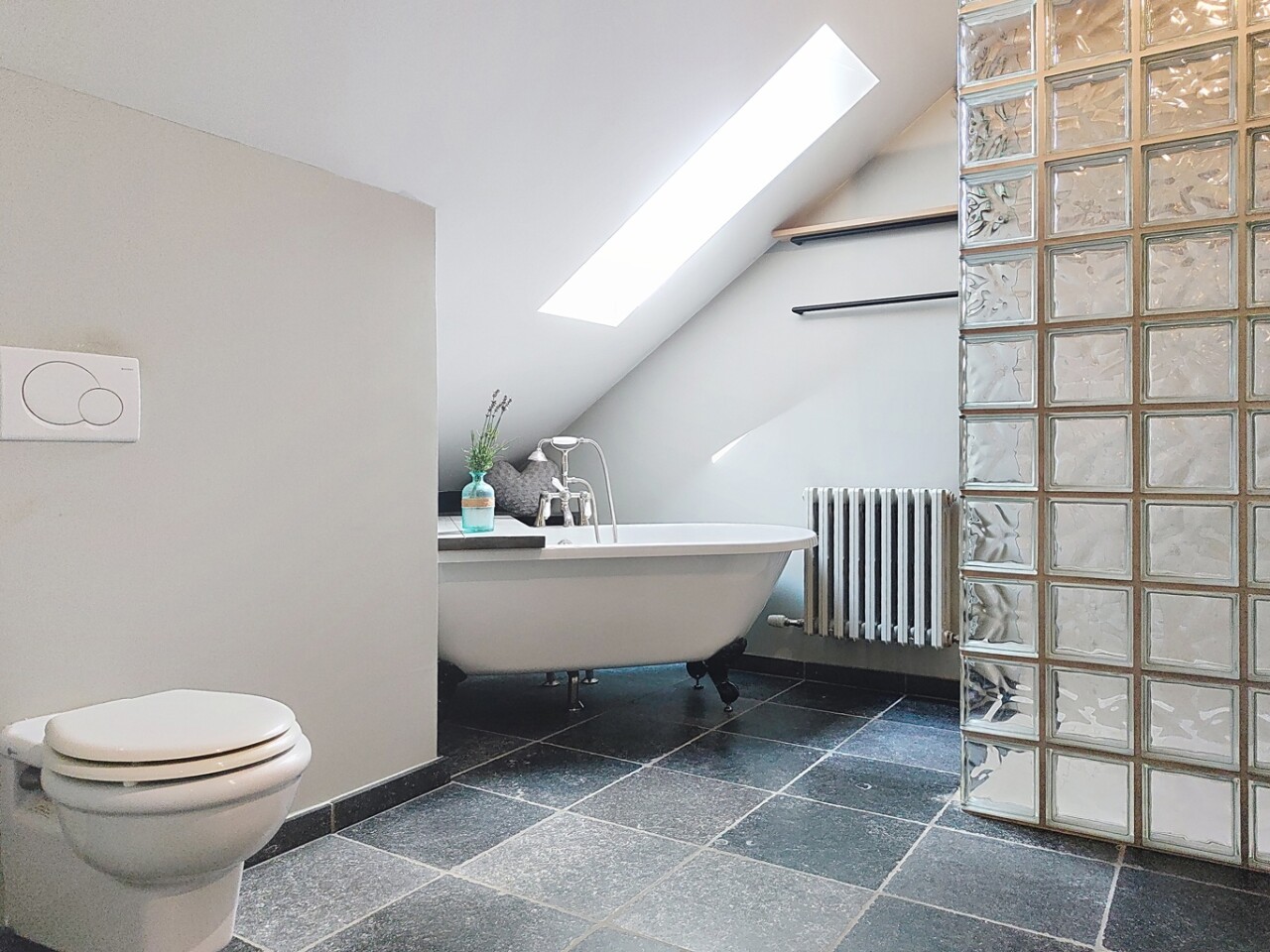 -Luxueuze badkamer – voorzien van een losstaand bad, inloopdouche, dubbele lavabo en aparte wc, waar relaxen een dagelijkse routine wordt.